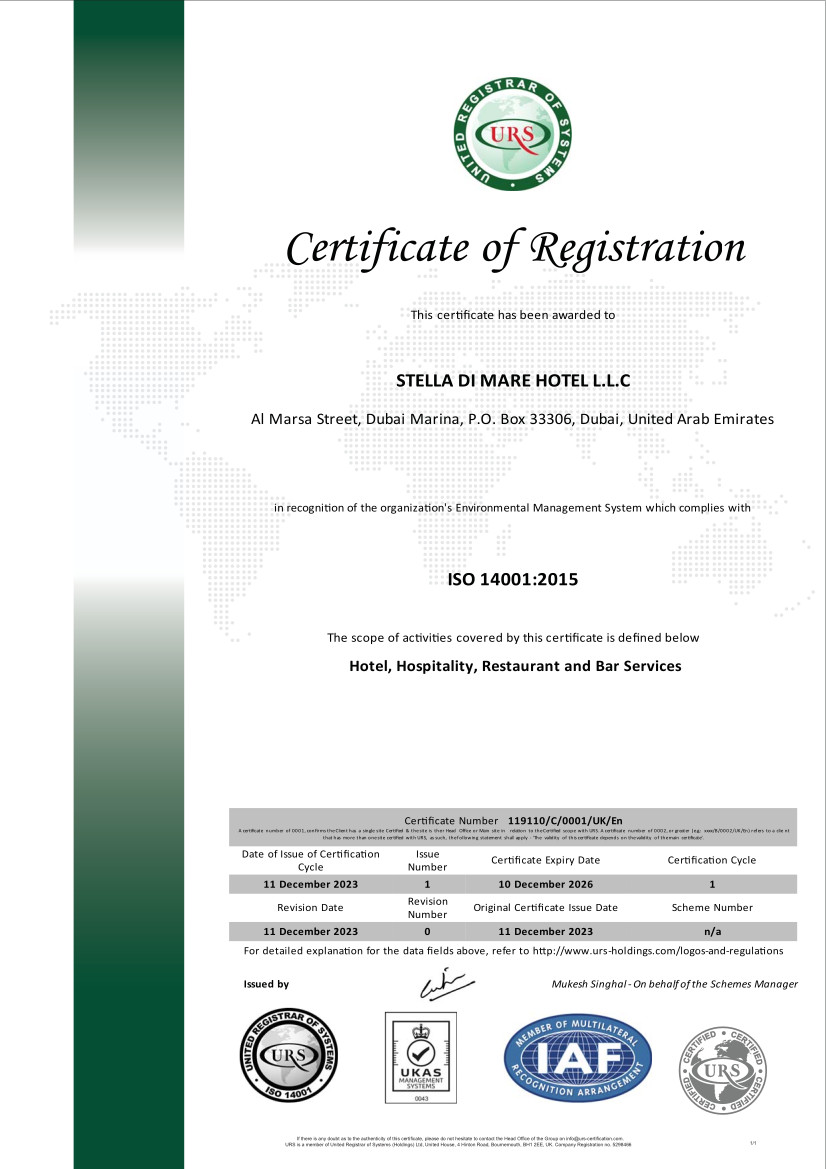 At Stella Di Mare Dubai Marina Hotel, we are leading the charge in being eco-friendly as we believe that every small or big decision, makes a meaningful difference.