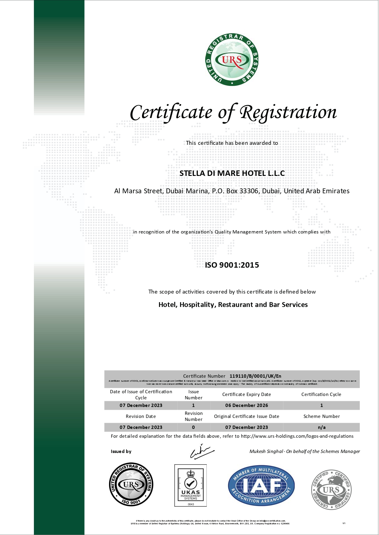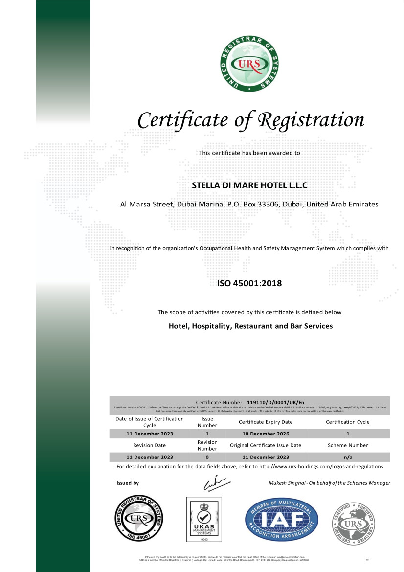 What is a further proof of our dedication, is our achievement of receiving certification ISO 9001, ISO 14001, and ISO 45001. Which indicates our commitment to quality and the environment. Also earning the esteemed EcoCheck GSTC Certification by Intertek Cristal. These internally recognized standards assure environmental responsibility, quality management and workplace safety, that leads to assuring our guests that their comfort and well-being are our priority whilst being environmentally conscious.